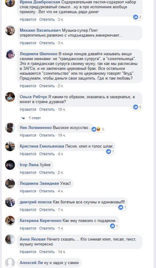 "Содержательная песня - содержит набор слов, придурковатый смысл... ну а про исполнение вообще промолчу...Вот что не сделаешь ради денег", - написала пользователь соцсети Ирина.