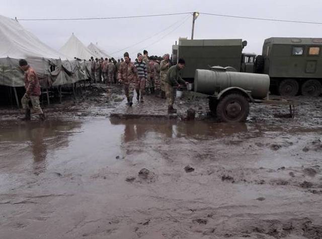 Май 2016 года. С учетом масштабного финансирования Министерства обороны, волонтерской помощи, на третьем году войны на полигоне Широкий Лан скотские условия.