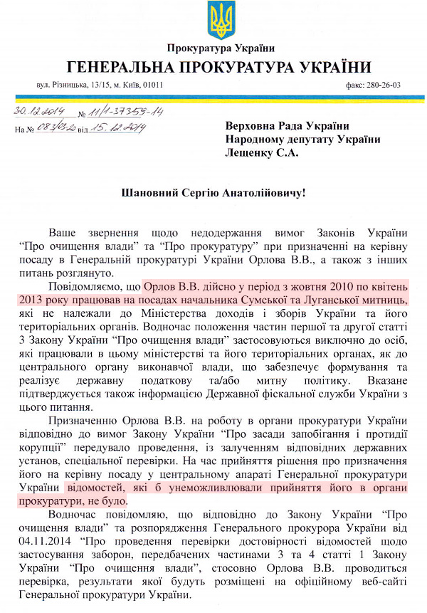 керівника, заступника керівника територіального (регіонального) органупрокуратури України, Служби безпеки України, Міністерства внутрішніх справ України, центрального органу виконавчої влади, що забезпечує формування та реалізує державну податкову та/або митну політику (це стосується Орлова) , податкової міліції в Автономній Республіці Крим, областях, містах Києві та Севастополі.