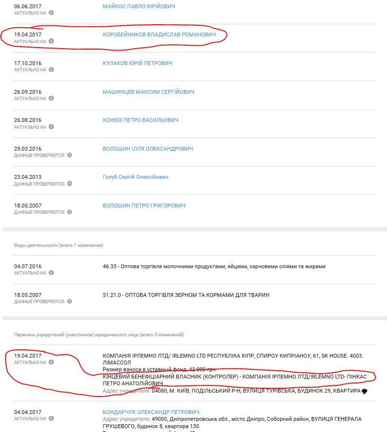 Петро Пінкас значиться бенефіціаром «Ексімагрокому» через те, що він є фактичним власником кіпрської фірми «Irlemno Ltd». У кіпрському реєстрі директором цієї фірми вказаний Christakis Konnaris, а секретарем є «Sykon nominees limited».