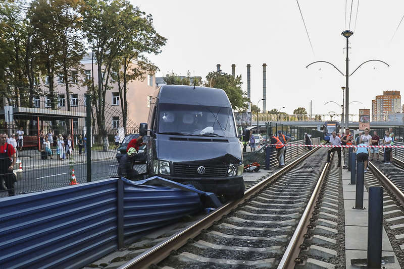 В Киеве на Борщаговке пьяный водитель микроавтобуса вылетел на трамвайные пути