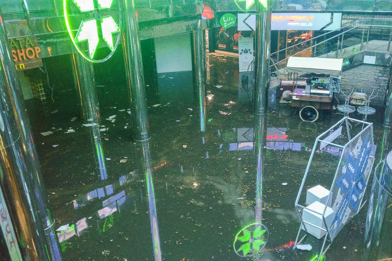 Информатор побывал в затопленном «Метрограде» и увидел последствия затопления. Стихия нанесла огромный урон имуществу магазинов и самому торговому центру.