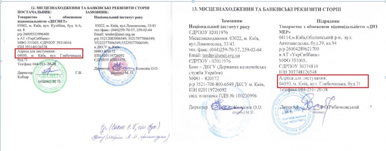 Подписи на документах ставили директор Института Елена Колесник и две представительницы тендерного комитета.