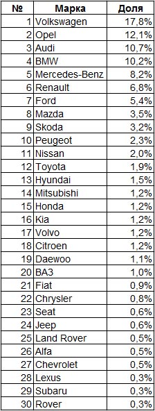Популярностью среди украинцев по-прежнему пользуются автомобили немецких марок: