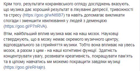 "Для многих из нас музыка - важная часть жизни. Мы часто обращаемся к любимым песням, композиторам или исполнителям, ведь отдельная песня может поднять настроение, вызвать приятные воспоминания или просто успокоить. Впрочем, ученые утверждают, что музыка - это не просто приятный бонус в нашей жизни, на самом деле, она имеет значительное влияние на наше здоровье", - пишет министр.