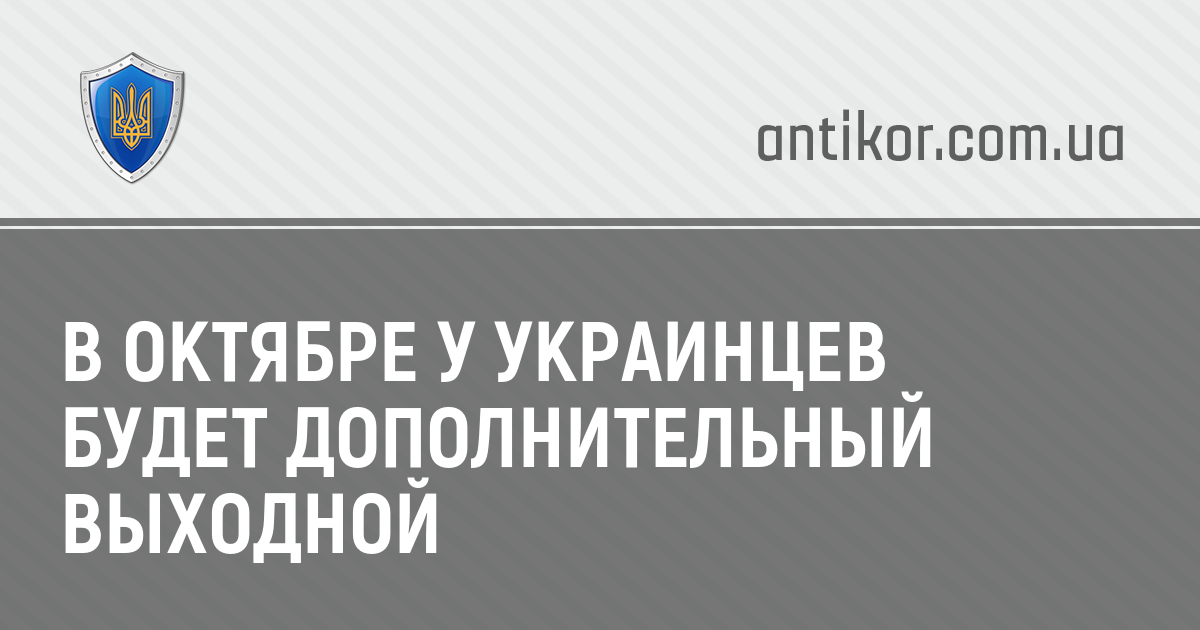 В следующем месяце, в связи с празднованием Дня защитника Украины, 14 октября, будет девять официальных выходных и праздников. Об этом свидетельствует распоряжение Кабмина.