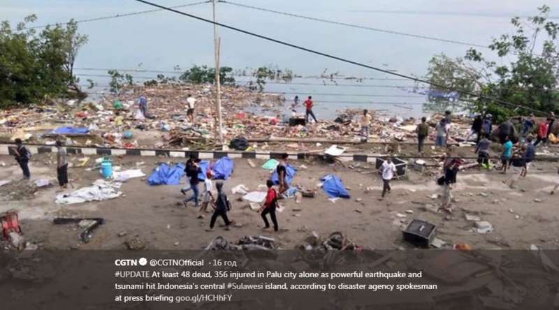 На побережье индонезийского острова Сулавеси землетрясение магнитудой 7,5 вызвало цунами - погибли по меньшей мере 48 человек.