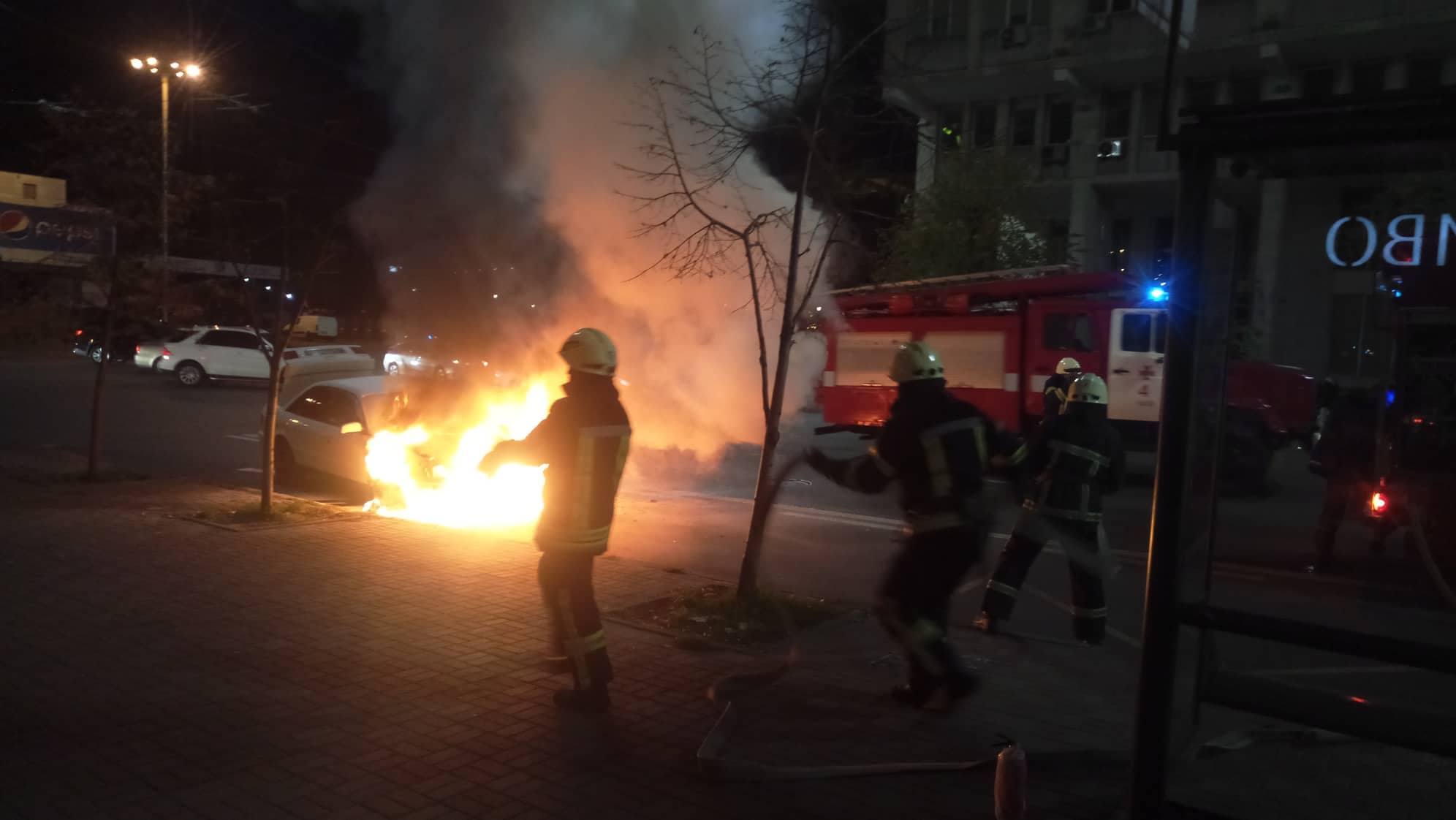 В Киеве на перекрестке ул. Эспланадной и Саксаганского горит автомобиль Audi белого цвета. На место уже прибыли три машины ДСНС.