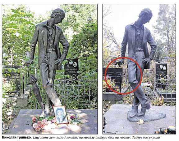 Кроме того, мы обнаружили ограбленным памятник на могиле известного актера Николая Гринько (1920-1989).