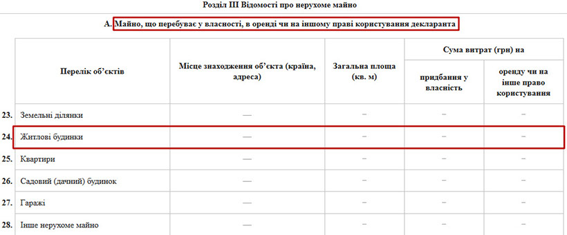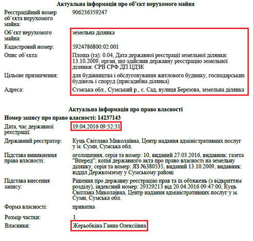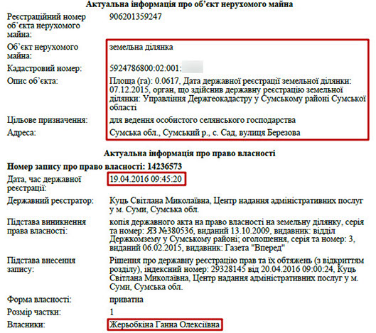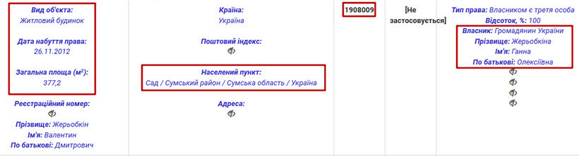 Також дружина прокурора і його діти з 2012 року мають право користування самим будинком. Це означає, що відповідне право користування мало б бути вказане в декларації за 2015 та 2016 роки. Однак у них Валентин Жерьобкін вказує лише власне право користування цим майном, а от про дружину та дітей – ні слова, що є очевидним порушенням.