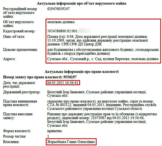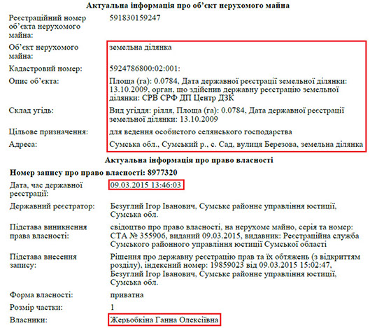 Варто також відзначити ще один факт. Попри те, що прокурор із родиною користуються будинком з 2012 року – у жодній паперовій декларації (2012-2014) вони не вказують це житло. Окрім того, коли Євгенія Анатоліївна Жерьобкіна подавала свою паперову декларацію за 2015 рік – вона теж не вказувала ні будинку, ні земельної ділянки під ним.