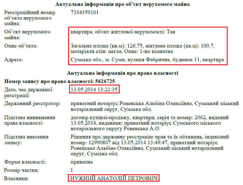 У його власності з 2014 року є квартира в Сумах, за адресою: вулиця Фабрична, 11. Цей будинок теж є новобудовою. Площа квартири Анатолія Петровича – 126 кв. м.