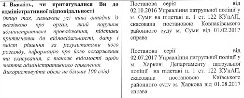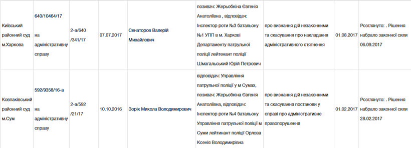 У своєму досьє, яке Євгенія Анатоліївна подавала на кваліфікаційне оцінювання, вона вказала, що її двічі намагалися притягнути до адміністративної відповідальності за порушення ПДР. В першому випадку її було оштрафовано за здійснення зупинки ближче ніж в 10 метрах від пішохідного переходу, а в другому – за неправомірне перетинання дорожньої розмітки. Проте у двох випадках Євгенія Анатоліївна оскаржила рішення поліцейських у суді.