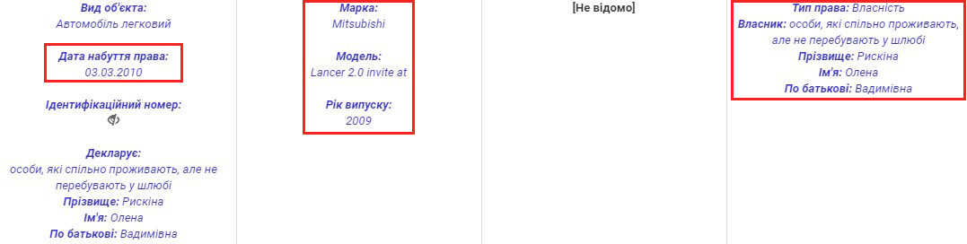 Зовсім недавно Бровченко вказує в декларації цивільну дружину Рискіну Олену Вадимівну, яка працює заступником керівника апарату Господарського суду Харківської області. Оскільки вона обіймає посаду державного службовця, Ігор Олександрович мав би вписати Олену Вадимівну у декларацію родинних зв’язків, але не зробив цього.