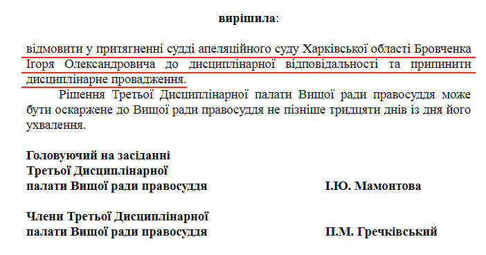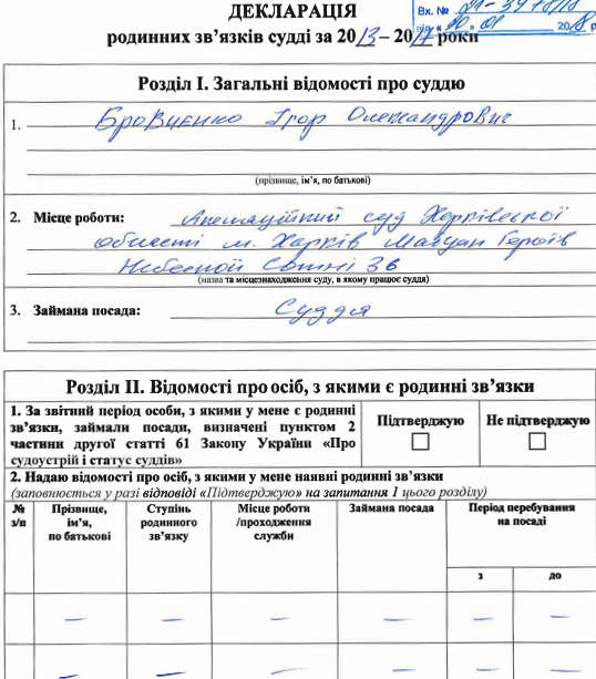 До того ж у пункті 22 вказаного документу Бровченко підтвердив, що не вчиняв дії, за які передбачена відповідальність. Однак саме у 2016 році Ігор Олександрович порушив правила дорожнього руху, на що був складений адміністративний протокол. За необачність суддя заплатив штраф 270 грн.