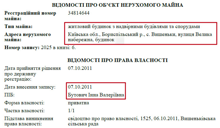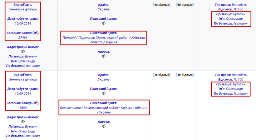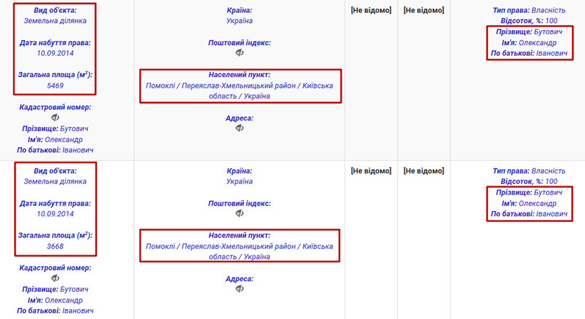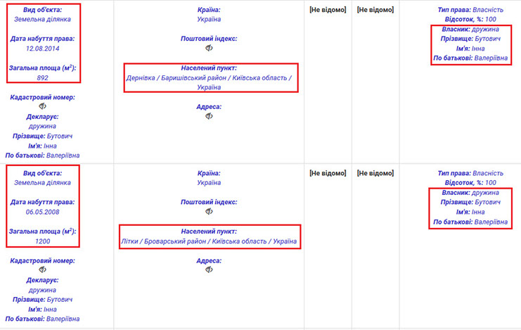 Цікаво, що частини майна немає в декларації прокурора за 2014 рік. Наприклад, відсутньою є вищезгадана квартира від Київської міськради, якою Олександр Бутович користується з 01.01.2014. Не задекларованими виявилися і земельні ділянки дружини в с. Дернівка та с. Літки.