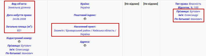 Решта майна прокурорської родини – винятково земельні ділянки в Київській області. У власності Олександра Івановича 5 ділянок загальною площею 39 тис. кв. м. в Помоклі, Березенщині, Зазим’ї . Ще 2 земельні ділянки в Київській області має дружина Інна.