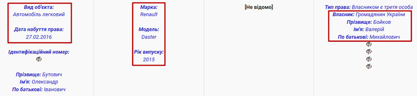 Щодо рухомого майна, то воно в прокурорській родині – відсутнє. У Олександра Бутовича є лише право користування автомобілем Renault Daster 2015 року випуску, придбаним у 2016. Власником цього авто є тесть прокурора. Навіть у 2018 році подібне авто коштує приблизно 14 тис. доларів.