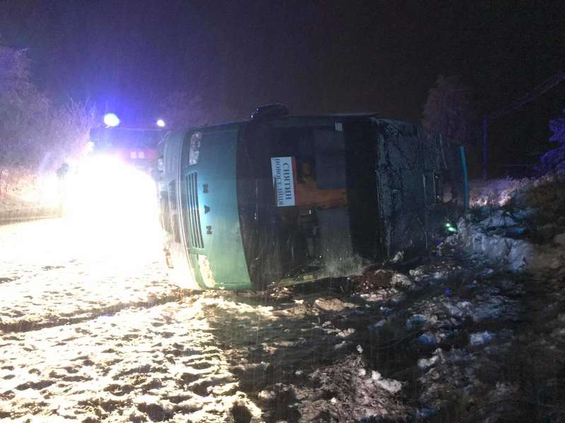 Вчера вечером, 26 ноября, на автотрассе Черновцы – Косов перевернулся пассажирский автобус. В салоне машины находилось 20 человек. Авария произошла из-за сложных погодных условий. Трасса была занесена снегом.