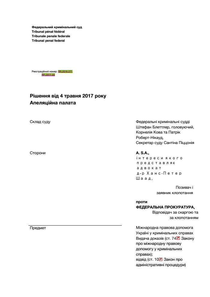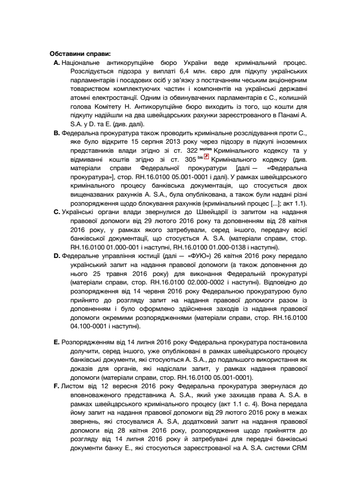 Речь идет о решении Федерального уголовного суда Швейцарии. Эти решения являются публично доступными на немецком языке и Центр противодействия коррупции решил их перевести. Они абсолютно признают право украинского НАБУ на международное сотрудничество.