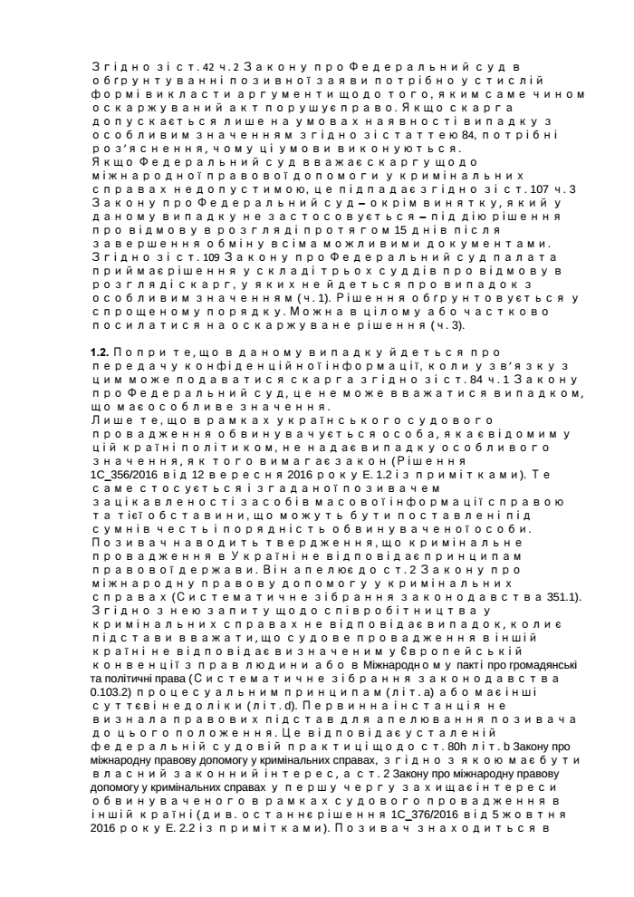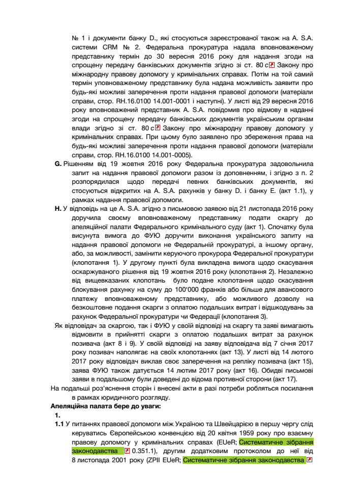Швейцарский суд и не мог принять иной вердикт, ведь вопрос обмена доказательствами между Швейцарией и Украиной регулируется Европейской конвенцией о взаимной правовой помощи по уголовным делам от 20 апреля 1959 года.
