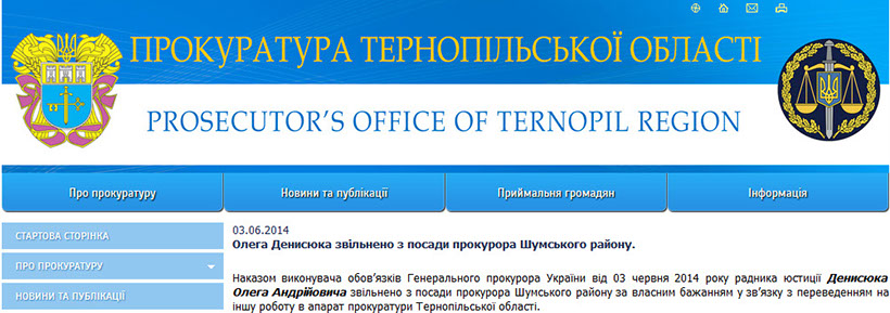 Втім, навіть після Революції Гідності його було звільнено не відразу. Це сталося лише 03 червня 2014 року і то, наче б то, за власним бажанням у рамках переведення на іншу посаду в апарат прокуратури.