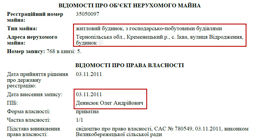 До речі, дружина Олега Андрійовича – Денисюк Наталія Володимирівна – є прокурором Зборівського відділу Тернопільської місцевої прокуратури. Тому вона теж подала відповідні майнові декларації.