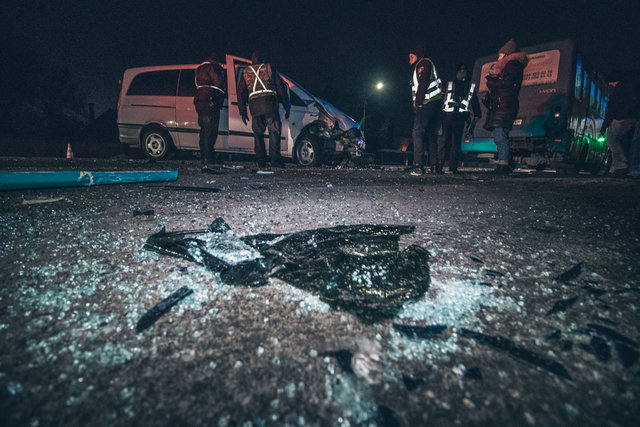 В результате происшествия никто не пострадал. Больше всего увечий получил автомобиль Hyundai Accent: повреждены боковая часть со стороны водителя и багажник, из него выпал газовый баллон, который, к счастью, не взорвался. У микроавтобуса Mercedes полностью разбит передний бампер, а у TATA поврежден задний бампер.