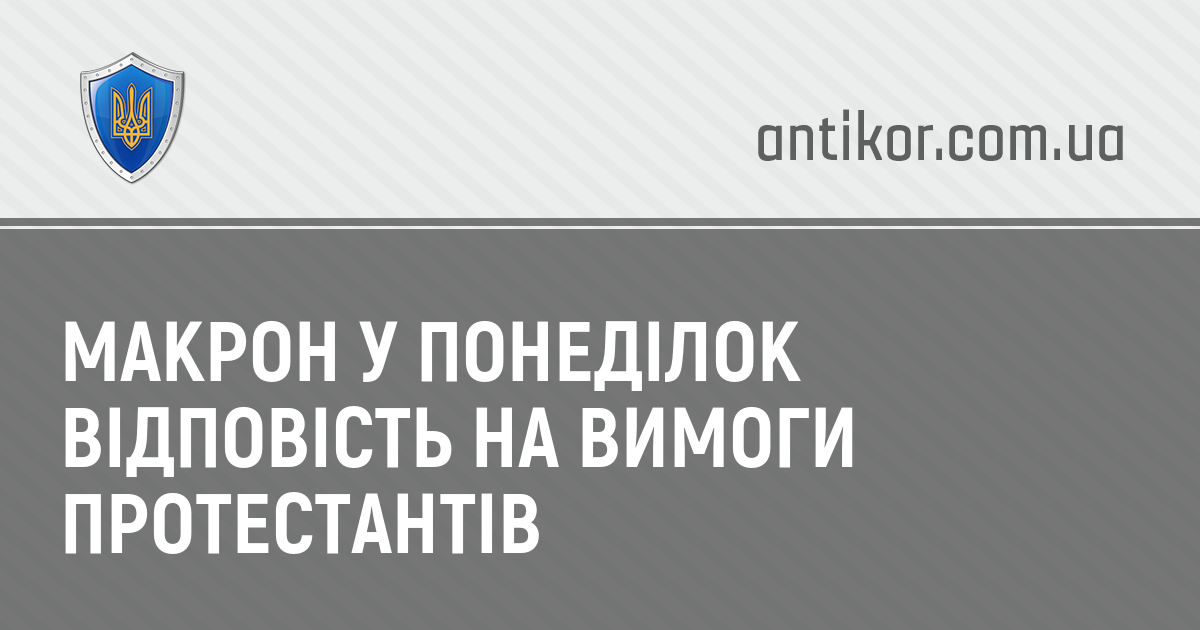 Президент Франції Еммануель Макрон у понеділок виступить зі зверненням до народу у зв’язку з антиурядовими демонстраціями “жовтих жилетів”.