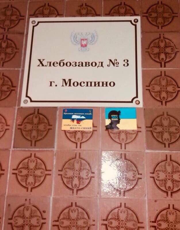 «В Донецке (улицы и здания микрорайона Донской, Щетинина, Раздольное), улицы и здания города Моспино, на Старобешевський ТЭС (пгт. Новый Свет). Эти наклейки появились на дверях общаги Старобешевского ПТУ, где проживают российские солдаты оккупационных сил РФ.