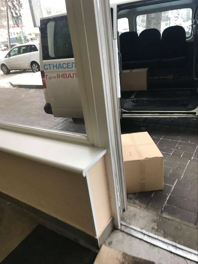 Примітно ще й те, що подарунки привезли на транспорті для інвалідів від соціального захисту населення.