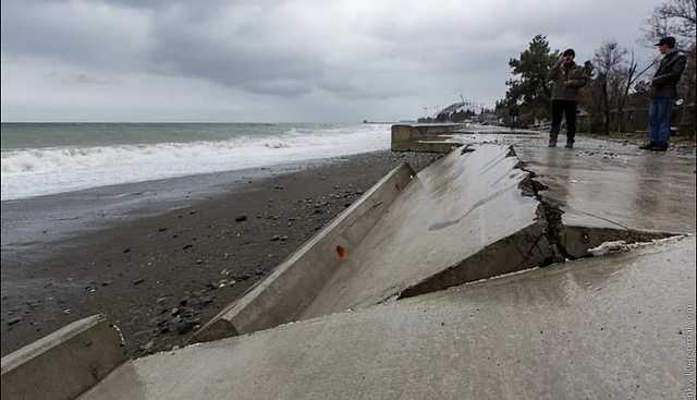 Причиной разрушений, как считают некоторые специалисты, является также и деградация пляжей в результате строительства морпорта в устье реки Мзымта, который перекрыл выносы гальки на пляжи.