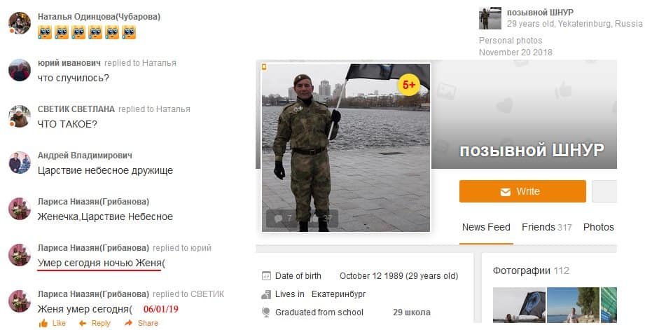 Еще один российский наемник из Екатеринбурга умер 6 декабря Бабкин Евгений с позывным “Шнур”, 9 ошпмп.