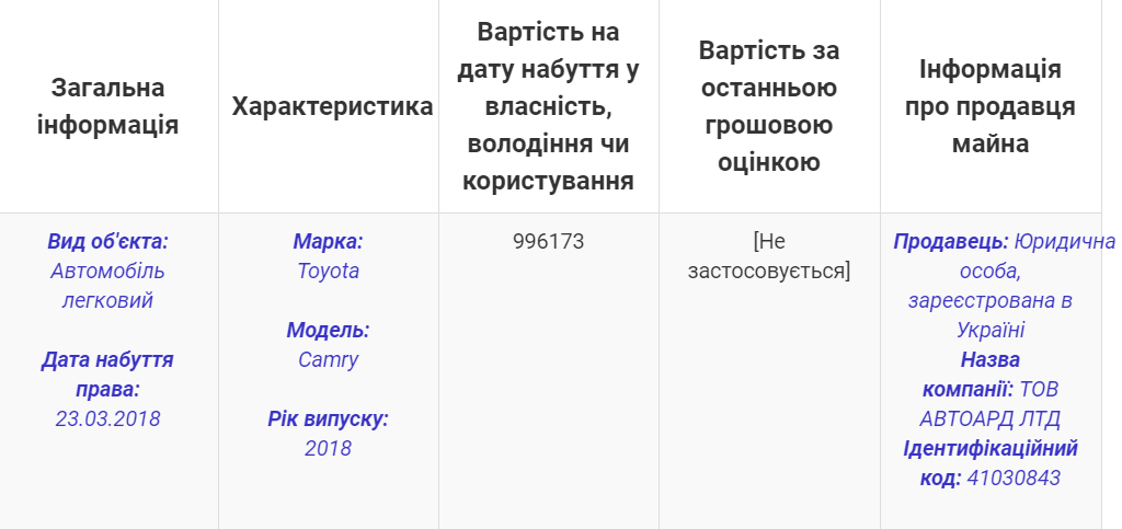 Это: Mitsubishi L 200 2008 года выпуска самого Попова, Mercedes benz Vito 120 2008 года и Ford 1.1 Fiesta 2013 года матери, Land Rover Defender 2008 года и FORD F150 2014 года отца. Однако, как удалось узнать редакции из открытых источников, ни один из этих автомобилей не стоит миллион гривен. В марте минувшего года Попов вносил изменения в декларацию, тогда он приобрёл новенькое авто Toyota Camry 2018 года выпуска, стоимостью 996 тысяч 173 гривны.