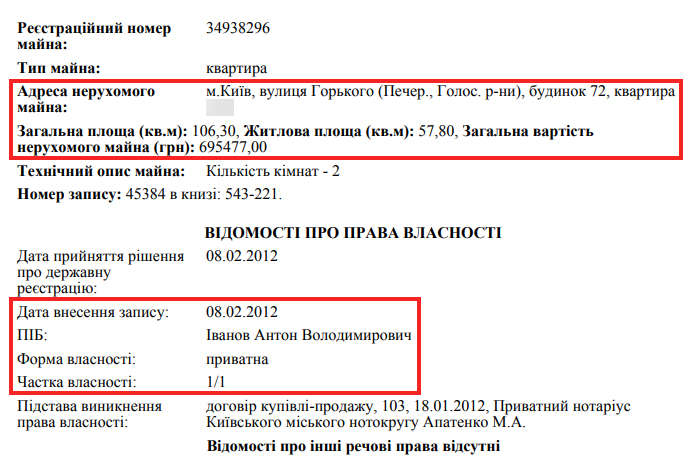 Аналізуючи майно родини Іванових, ГРД зробила висновок, що лише за офіційними даними власних декларацій сім’я Іванових витратила за 9 років (з 2002 по 2011) на придбання нерухомості та цінного майна орієнтовно 259 тис. доларів США, що перевищує суму їхніх офіційних доходів за цей час.