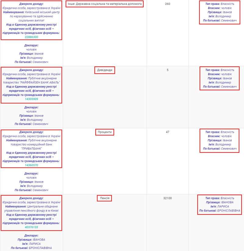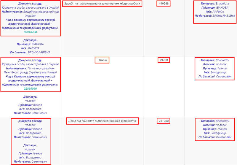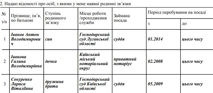 У свою декларацію родинних зв’язків Лариса Іванова записала сина суддю, дочку нотаріуса, та дружину брата — теж суддю.