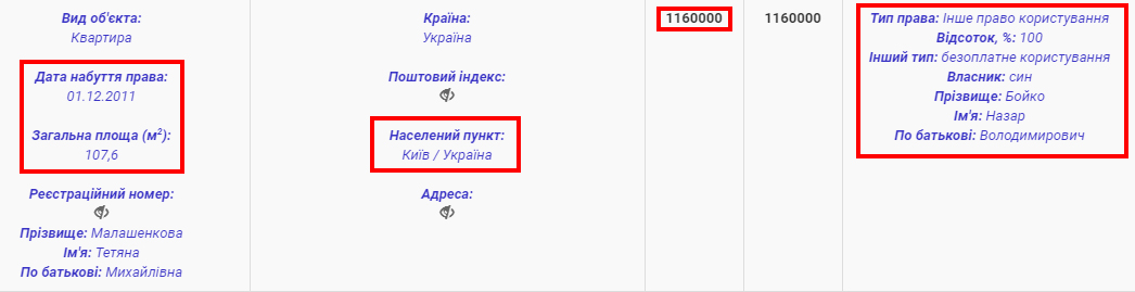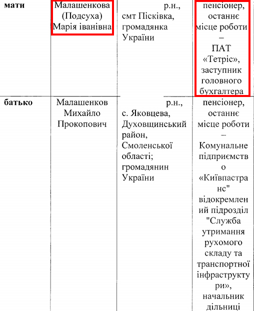 190 000 дол. США – мінімальна ціна на квартиру в цьому ж будинку схожої площі. Видання strana.ua з посиланням на інвестиційний договір повідомило, що квартир коштувала близько 260 000 доларів США. Звідки мама членкині ВРП взяла такі кошти невідомо, адже у досьє кандидата написано, що Марія Малашенкова пенсіонерка, а раніше трудилась головною бухгалтеркою в ПАТ «Тетріс».