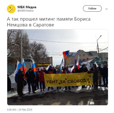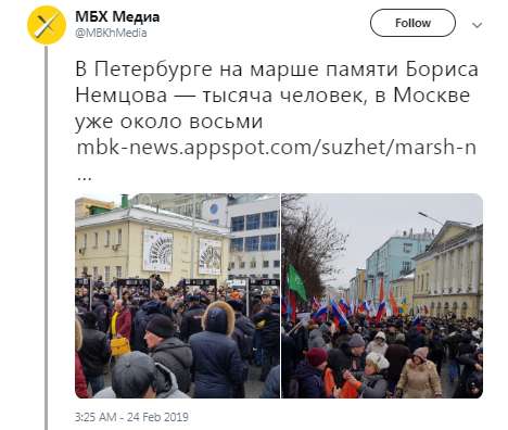 Марш памяти Бориса Немцова проходит в Москве и ряде других российских городов в воскресенье, 24 февраля.