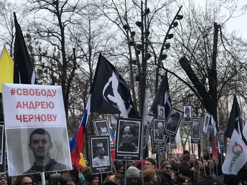 Также можно заметить плакаты с лицами политзаключенных, в том числе украинских - в частности, Романа Сущенко и Олега Сенцова, передает УНИАН.