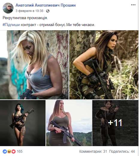 "Скажите, у меня есть своя личная жизнь? Это на моей личной страничке. Это фотосессия моделей, которая никакого отношения к девушкам из ВСУ не имеет. Это моя личная жизнь, это на моей личной страничке, я поставил это 3 февраля, в свой выходной день. Могу я что-то там выставить так, чтобы в моей жизни не копались? Это не имеет ничего общего с Вооруженными силами Украины", – заявил OBOZREVATEL Прошин.