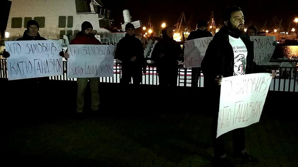 В свою очередь, глава местной полиции Руслан Форостяк сообщил, что два активиста с пока непонятными целями в темное время суток пересекли границу поста военной службы правопорядка и развернули баннер «Кто заказал Катя Гандзюк» у ракетного эсминца.