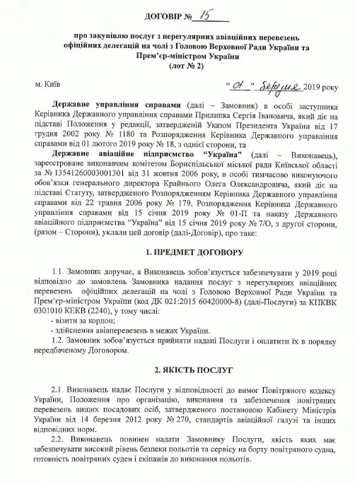 Соответствующие договора между Государственным авиационным предприятием "Украина" и Госуправлением делами от 1 марта обнародовали Украинские Новости.