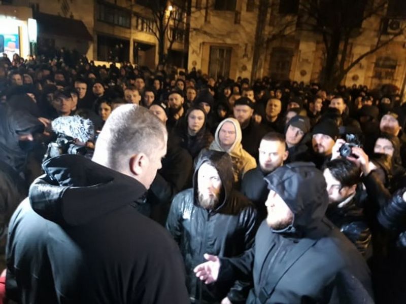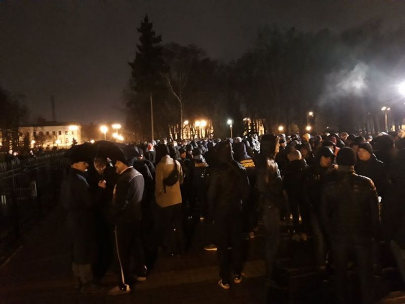 Действия полиции, примененные в отношении группы националистов, вызвали моментальную реакцию их единомышленников в других городах, и уже спустя несколько часов в Полтаву съехались представители «Нацкорпуса» и «Нацдружин» из ближайших крупных городов — Харькова, Сум, Днепра, Запорожья. По некоторым данным, в общей сложности, собралось порядка 600 человек. И в 22.00 колонна решительно настроенных молодых людей пришла к зданию ГУ Национальной полиции в Полтавской области, чтобы «добиться справедливости» и услышать от правоохранителей, какие законы были нарушены участниками акции.