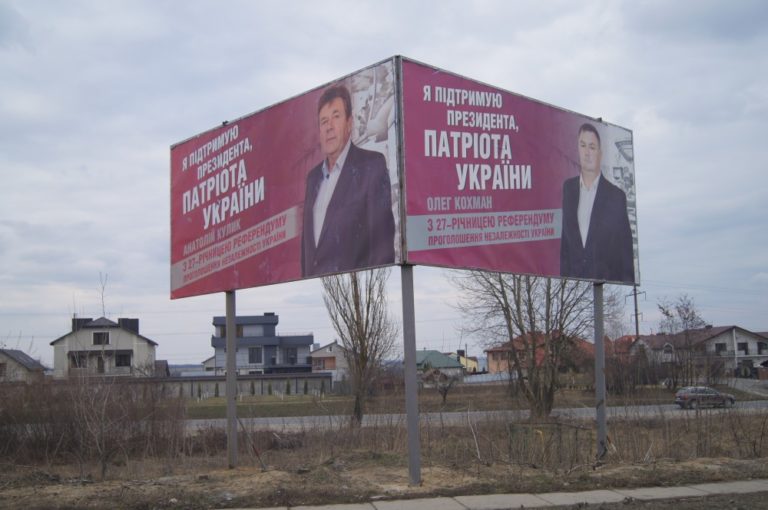 Очень напоминала предвыборную и рекламная продукция, размещенная у Тернополя поднимавшая тему 27 годовщины референдума о провозглашении независимости Украины. На них размещались портреты глав двух объединенных территориальных общин: Анатолий Кулик (Байковецкая ОТГ) и Олег Кохман (Великогайковская ОТГ). На продукции при этом нет никаких выходных данных.