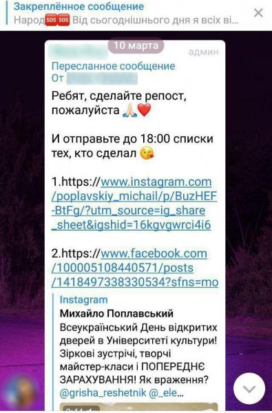 Некоторые осмелились показать переписку, как им пишут из деканата с принуждением делать репосты со страницы Поплавского, отмечая, что это в интересах студентов.