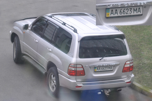 Как удалось установить ZN.UA, машину “Тойоту Лэндкрузер” с номерами АА 6623 МА неоднократно видели припаркованной у здания Управления “А” Центра специальных операций Службы безопасности Украины, более известного под названием спецподразделение “Альфа“. Оно расположено в Киеве в т.н. “Полицейском садике”. В базе данных ГАИ этот номерной знак не значится. Однако ZN.UA располагает фотографией этой машины, сделанной в мае 2013 года. По всей очевидности, автомобиль используется кем-то из руководителей “Альфы”, поскольку припаркован на месте, где имеют право парковаться сотрудники управления, занимающие руководящие посты в данной структуре