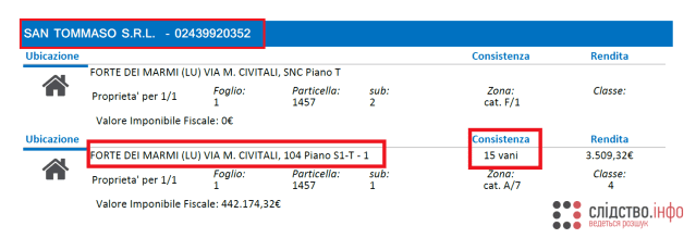 Согласно документам, полученным Слидство.Инфо, в 2017 году итальянская фирма San Tommaso S.R.L., задекларированная Зеленским, приобрела 15-комнатный дом в тосканском городке Форте-дей-Марми.