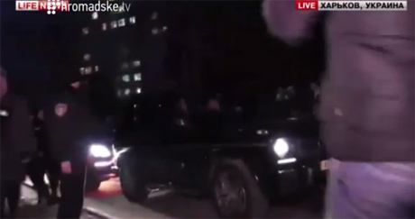 | Тимошенко покинула территорию больницы в Харькове на представительском кортеже из 3х машин. Стоп-кадр прямой трансляции |