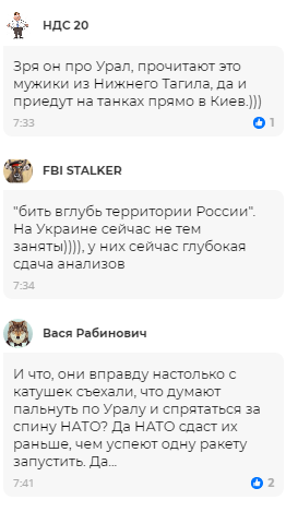 “Прочитають це мужики з Нижнього Тагілу, та й приїдуть на танках просто до Києва”, — погрожують росіяни.