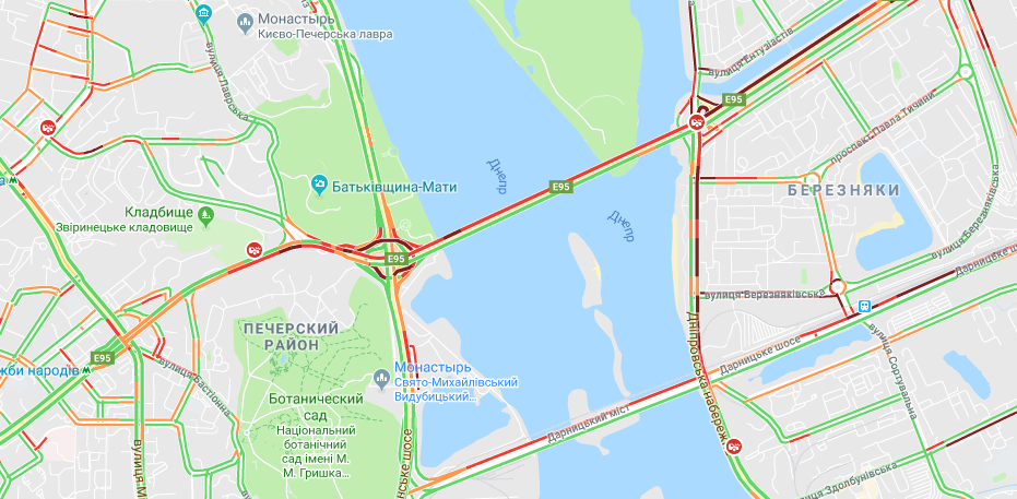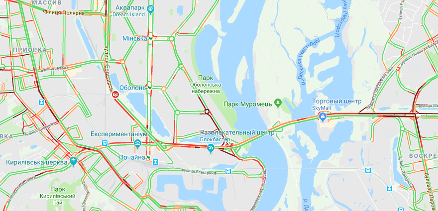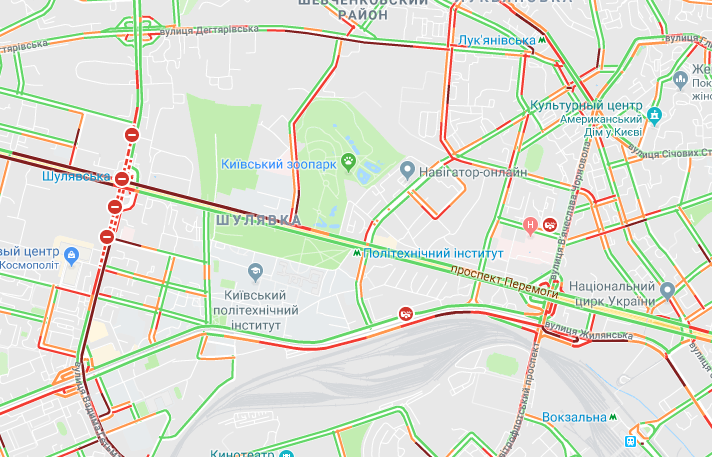 В частности, пробка образовалась на проспекте Победы возле Шулявского моста в направлении центра города